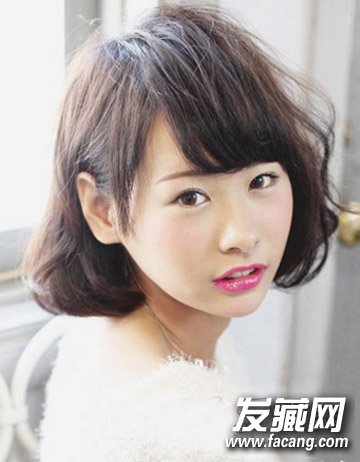 一款清甜的齐耳短发发型,一款斜平刘海过眉勾勒出小脸的精致来,蓬松的小卷梨花头显露出明显的清新与灵动来, 空气感十足。