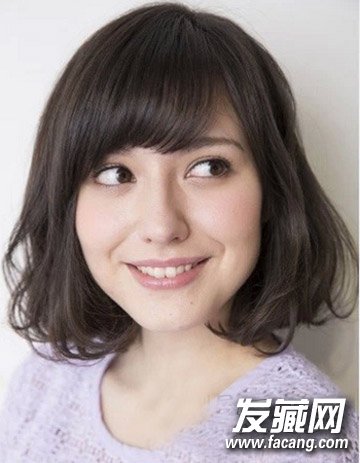 气质的大圆脸发型时尚的偏分刘海设计不仅简单而明显气质,发尾的小卷梨花烫发勾勒出别致的气质感来,十分有气质。