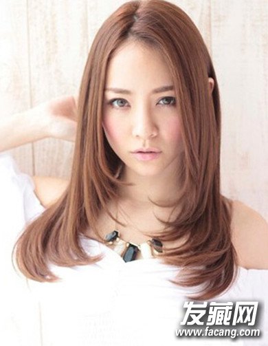 中分的的长刘海顺着脸颊垂下,完美地遮掉两颊的肉肉,令你瞬间变身小脸美女,金棕色的头发柔顺有光泽,优雅大气又不失女人味。