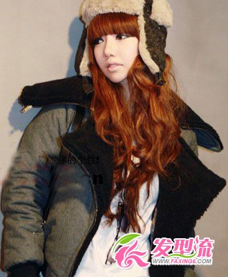 这款长发刘海发型图片给我们带来视觉上的碰撞,平刘海打造出蓬松内扣的弧度,其余头发利用发蜡和吹风效果展现出凌乱感。金色的染发很是吸引众人的眼球,搭配个性独特的兔耳帽让你充满了萝莉女孩气息。