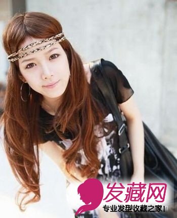中分刘海加发箍,中分刘海容易显老,如果你对中分刘海很有爱的话,那么就加上一个发箍吧,这样不仅不显老,还能让你时尚感十足。