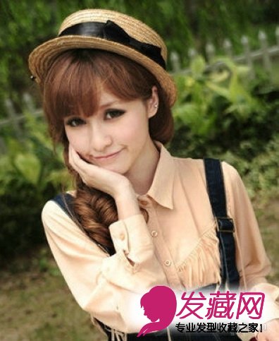 清新可爱的靓亮卷发侧扎到一边,明艳又可爱,长长的齐刘海,完美展现瓜子脸女生的精巧、尖细。
