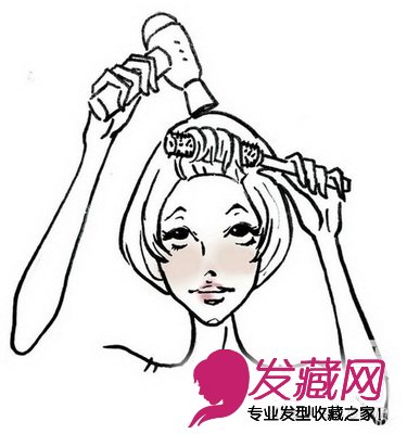 刘海的弧度是最关键的,要做出流畅自然的刘海,优美的弧度占首位。一手用大号圆鬃梳整体梳起刘海,一边向前转动圆鬃梳,另一手把吹风机的出风口固定在木梳位置,集中吹出自然的刘海弧度。吹风口集中吹风5秒后,可用吹风机尾端的吸风口集中吸风,这样做既保护头发免受高温伤害,又能更持久地维持卷度。