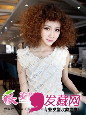 搭配着夸张的爆炸头发型,刘海处也以同样的卷曲幅度,将刘海打造蓬松感,与爆炸头完美结合在一起。