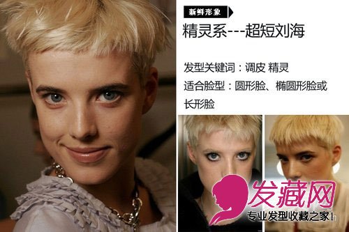 素有“Kate Moss”接班人之称的英国传奇超模Agyness Deyn一向风格大胆、多变,此番金色短发照一经发上网,便招网友疯狂转发。带着假小子般的不羁,短短的细碎刘海,看上去精神爽利,让人眼前一亮。