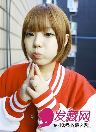 这款齐刘海的短发,很适合圆圆肉肉脸的女生哦,齐刘海要比较散碎一点才会好看,在染上黄色的发色,绝对超级修颜超级可爱的。
