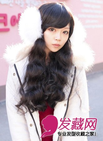 斜刘海卷发发型,将长发从耳际开始打造出弹性立体的卷曲感,不会让你的头发显得过于的蓬松,自然的形态就让你轻松展露少女的俏皮活泼的气质