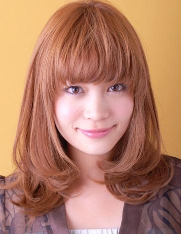 小编点评:圆脸MM都很怕尝试齐刘海,其实像这款层次感的齐刘海不但不会觉得脸圆,蓬松的效果还能把你的脸修饰得小一点,更有线条呢。