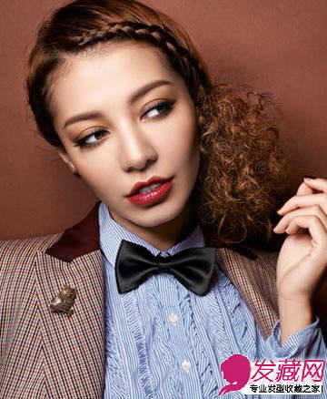 这一款简单的三股辫刘海编发是不是非常简单个性呢?在脑后一侧扎成一个马尾,将发梢打造出超蓬松的效果,略显凌乱,非常随意自然哦!整个造型非常具有时尚英式风情。