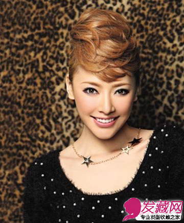 刘海处的高耸造型非常吸引人,很有层次感,给人眼前一亮的感觉,自然的卷发尽显知性时尚。在脑后盘成一个简单的发髻,瞬间提成了优雅成熟感,整个造型真是太时髦了。