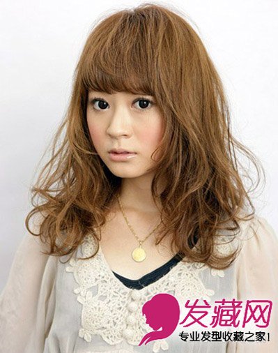 编辑点评:微微内卷的齐刘海多了几分可爱,蓬松柔软的发尾营造出流动的空气感,整个齐刘海卷发显得甜美清逸。