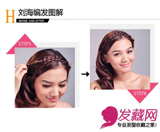 step5:再从左侧耳后编出一根辫子,同样拉扯至右侧耳后再用发夹固定。这款刘海编发也就完成啦。
