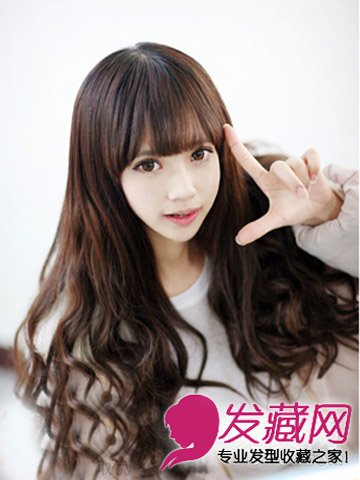 脸长的妹子可以用齐刘海的长度来帮助修饰脸型,这样使得脸型看起很显小,长卷发带着时尚感。