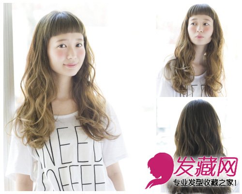 眉上齐刘海将额头缩小了一半,搭配长卷发,完全是一个可爱萝莉范。
