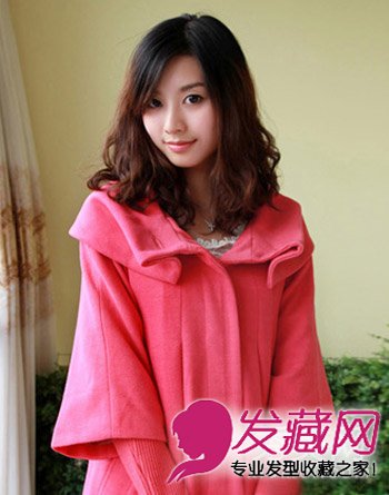 不规则的发尾烫造型,略显轻熟女气质,斜刘海的设计,修饰出精致的脸型,凸显出几分清新范,身着西瓜红的大衣,增添了甜美感。