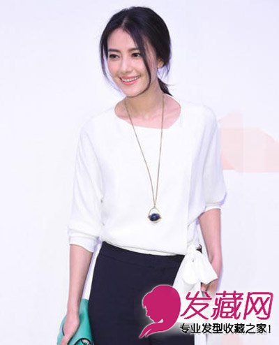 高圆圆的刘海让她看起来更温柔,头发中分后留出脸颊两侧的一缕碎发,刚好到下颌的长度,用来修饰脸型又不会太刻意。