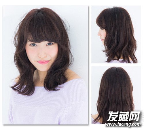 这款发型清纯甜美,深棕色发色让肤色显得白皙,微微卷翘的头发灵动减龄