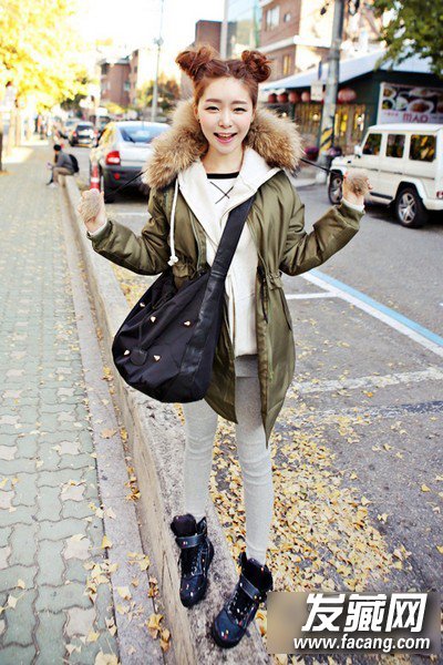 不喜欢披头发,这样扎两个丸子头也是不错的,丸子头可是矮个女生必备的增高神器之一呢。