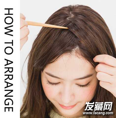 2015年刘海扎发教程图解: step 1:首选将头发显中分,再弄好发线,用细齿梳尾部将发线弄成波浪状。