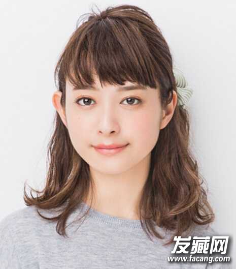 第二款:2015年刘海扎发效果图 不规则感的刘海扎发发型,很好拉长脸型比例,半扎的公主头发型露出耳朵,很显可爱甜美感。