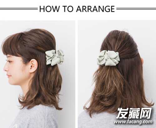 将头发半扎起来搭配上发饰,能够很好提升发型的吸睛度,完美打造出淑女甜美公主范儿。