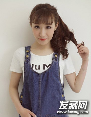 一款百搭又显嫩式的女生简单扎发发型,只是将长发进行简单的高马尾扎发来增添活力感,而清新的空气感刘海与马尾发梢丰盈的螺旋卷烫发更添活泼气质风。