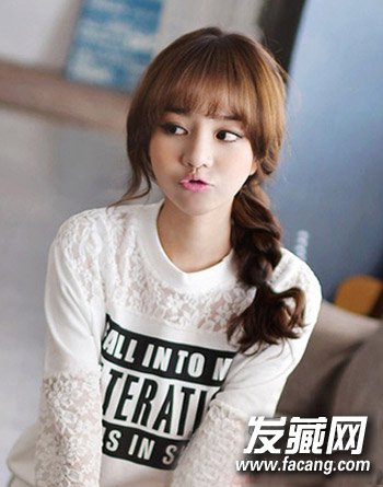 甜美可爱的侧马尾辫扎发,搭配上空气感的齐刘海,不仅展现出mm青春活力的气息,同时也具有了一定的修颜功效,将mm的五官衬托的更加小巧可爱。