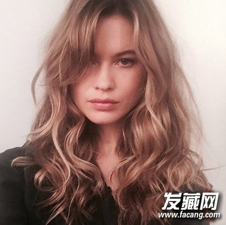 成熟韵味的大波浪发型,中分的设计和头帘的弧度,这也是蓬松刘海的一种风格。