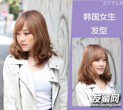 这款斜刘海中卷发给人时尚又甜美的感觉,刘海斜拨,脸颊两侧的头发修瘦脸型,发尾烫蓬松大卷,同时能帮助修长脖子。