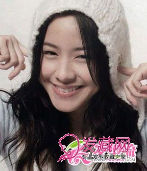 中分刘海,搭配微卷长发,带出浪漫唯美的梦幻气息。戴上白色毛线帽,更显时尚。再加上迷人的笑容,真是让人一见难忘!
