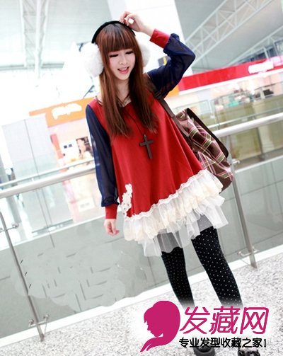 同样是圆脸齐刘海直发发型,配搭耳套更显清新的淑女味,红色的头发挑染,靓丽甜美。