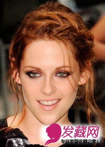 发型打造: 将头发侧分,发量多的那一边从发际线开始向耳后编成麻花辫,另一边一小撮侧发拧扭后向耳朵后面的方向随意固定。用手指拉松,打造自然松散的效果很关键哦!