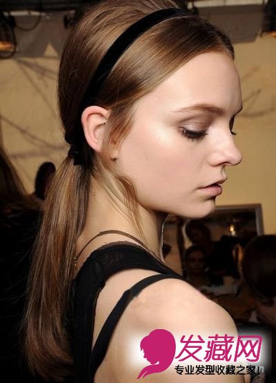 只需要一个复古发带就可以了。发带不仅能把你无法造型的碎刘海都整理好,还能给整体造型增添质感。双发带有很多种,细细的皮质双发带看起来很时髦,粗粗的棉布双发带则会很动感,你可以根据场合选择。
