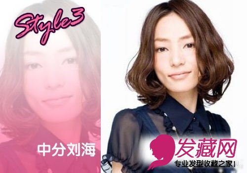 国字脸或者是颧骨较高的姐妹们可以试试这款刘海。中分的内弯长刘海,修饰了较突出的两腮,修饰了脸型,让脸型更柔和。随意的分线摆脱了中分刘海给人一贯的古板老成的感觉,增添时尚感。配合内弯的BOB头卷发,很有温柔沉稳的气质哦!