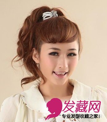 将刘海发型打造出内叠的效果,展现出女生光洁的额头,让女生的五官更加富有立体感觉,同时也增加了发型的时尚感,清爽的马尾发型设计,洋溢着青春活力气息,倍显年轻活力。
