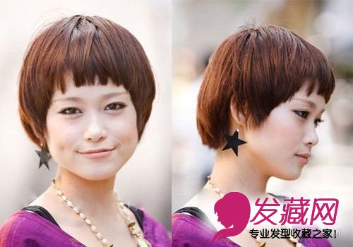 薄薄的极短刘海充满阳光般的活力,对于拥有较长脸部线条的女生来说,可以通过两侧的弧度的加入打造出可爱圆脸效果,顺直的蓬松感简约干练。