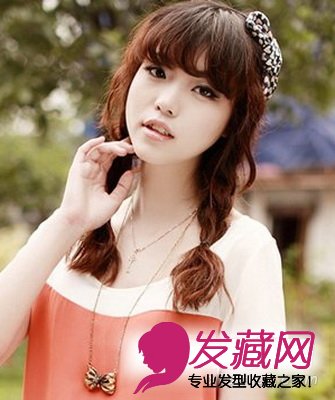 韩式麻花辫发型扎法是一款极具时尚气质的韩式发型扎法,双扎的麻花辫发型,展现女性俏皮可爱的气质,非常的纯真俏丽,有着弧度设计的齐刘海发型,凸显出了一双灵气十足的大眼睛。
