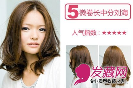 中长的中分刘海长至脖子的位置,修饰了较突出的两腮,轻易地改变了脸型!随意的分线摆脱了中分发一向给人古板的印象,配合浪漫的大卷,让你具有个性的同时又不失少女的浪漫气质。中分刘海今年大热,绝对不“傻气”,剪后立马变潮人。
