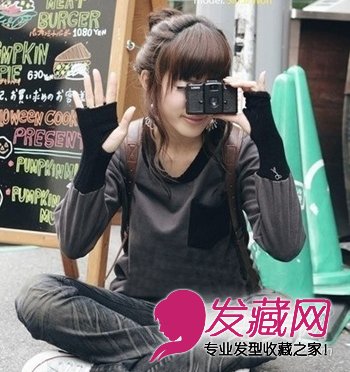 齐刘海的花苞盘发,青春尽显,活力无限,小女生最爱的齐刘海发型之一,两边的发缕,使造型更柔美、自然。