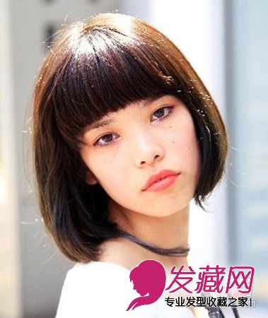 平刘海是变小脸的关键点,脸颊两侧“C”型的发梢制造出自然的弧度,看似随意却略动心机地修饰了长脸脸型。