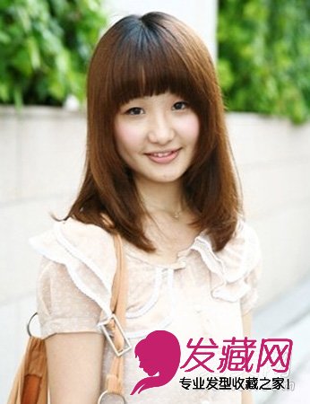彰显少女的清纯感,长及眼的轻薄齐刘海修饰圆脸很有效。如瀑布倾泻而下的超直发展现温婉气质,柔顺的秀发非常有异性缘哦。