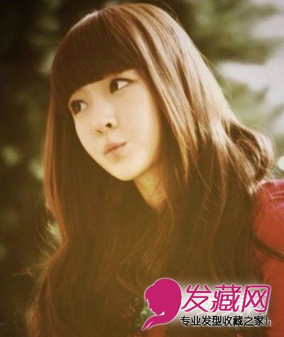 小编点评:长长的大卷发搭配可爱的齐刘海,显得无比青春。棕红色的发色将肌肤衬的很白,还显得有活力。齐刘海衬托出的大眼睛里还透露着一些古灵精怪,很可爱的女生。