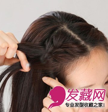 从头顶开始向两边编发,编发过程中要注意力度不能过小,以防辫子会散开。
