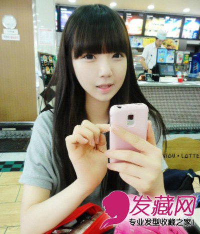 齐刘海的长直发造型,这样的一款发型非常的清纯哦!很适合校园中的圆脸MM们,在齐刘海和长直发的衬托下。女生的小圆脸瞬间就变成了鹅蛋脸,是不是非常的神奇呢。