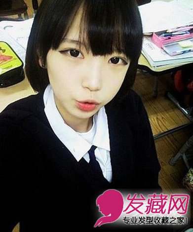 学生MM的短发设计需要加入一些学院风,平刘海的设计为这款短发增添了一丝娇俏感,前短后长的弧线修剪,可以完美的修饰脸型,并且同时带来了设计感。