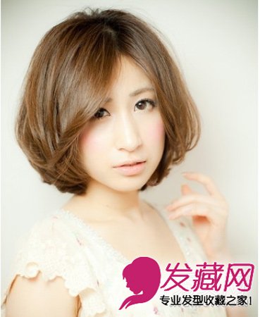 点评:充满小清新气息的中分短发波波头,八字型中分修饰过宽的额头以及颧骨,柔和脸部线条,内扣烫发为发丝注入空气而变得轻盈,同时达到瘦脸的效果。