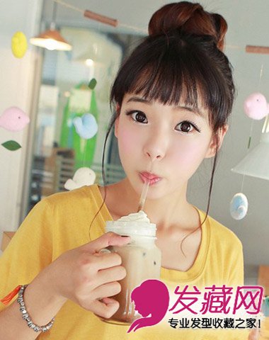 对于长发妹纸来说,丸子头及其的适合,有时候一个发卡或皮筋就能搞定,高高的发髻,青春活力还能有显高的效果。