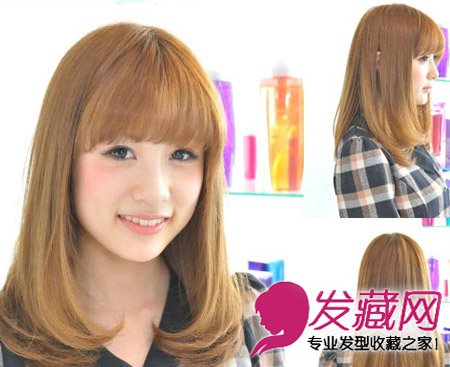 甜美的梨花头清纯可人,齐刘海搭配内卷发尾so sweet!瘦脸效果极佳适合各种脸型。