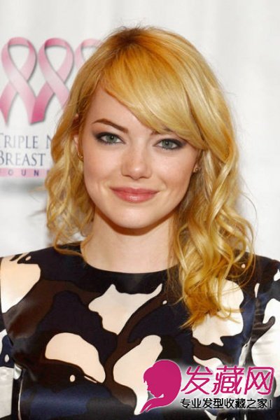当刘海的长度已经越过了眼睛,不妨把它们全都梳到一边,自然而然的从头顶轻轻的垂落在额头上,就像Emma Stone的侧刘海配波浪发,既更美的突出了面颊,又巧妙的解决了略显棘手的长度问题。