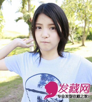 俏皮的学生气短发型,薄碎的发丝带点小叛逆感又不失清新可爱,黑发的纯净,一件简单T恤就很好看。